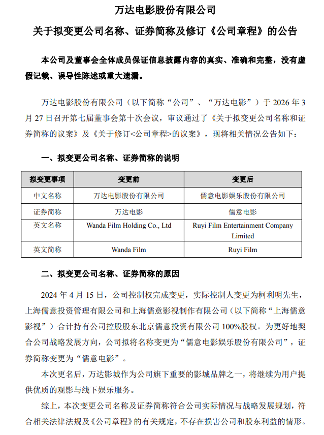 图源:万达电影公告