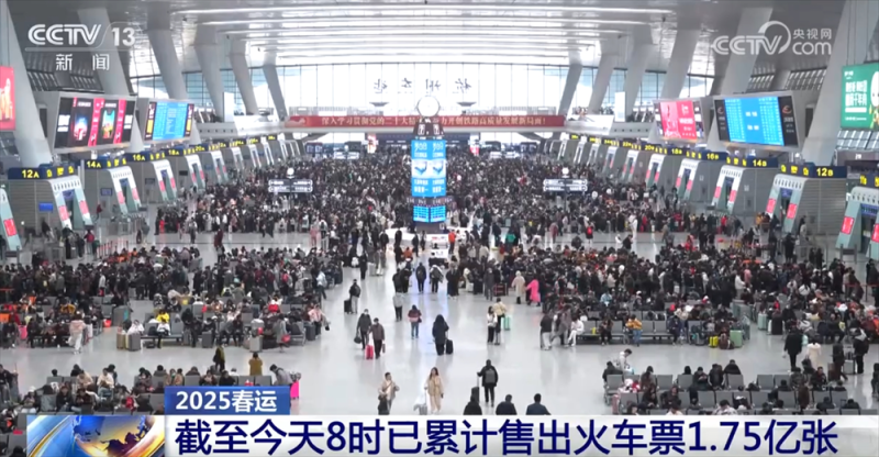 1月18日是春运第五天,春运客流运转大幅增长。截止18日早8时赌钱赚钱app,已累计售出春运工夫火车票1.75亿张。
