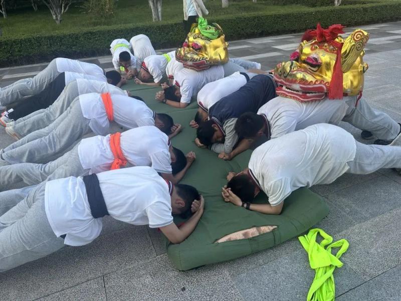 图为天府第七中学北狮队队员在作念平板撑捏锻真金不怕火。