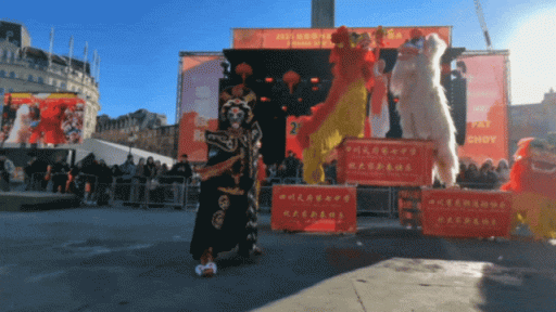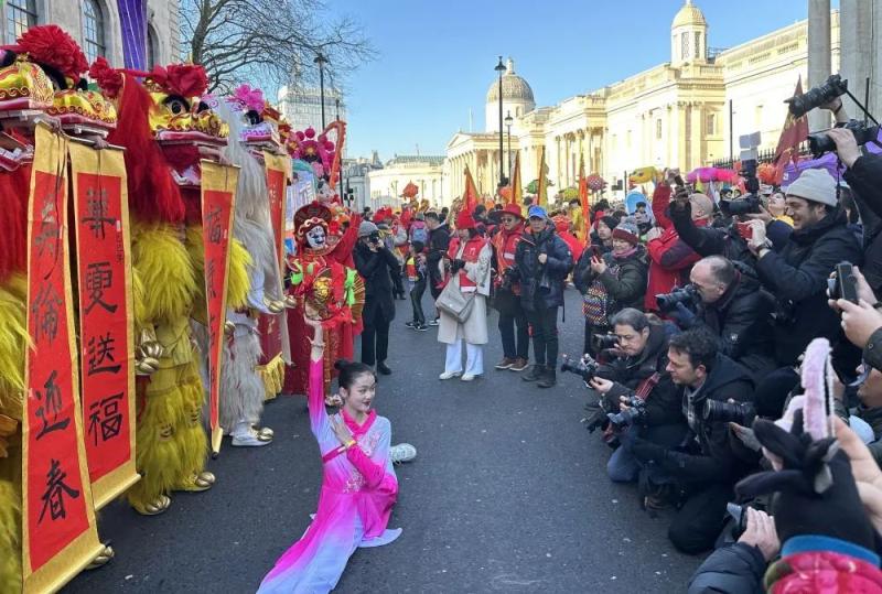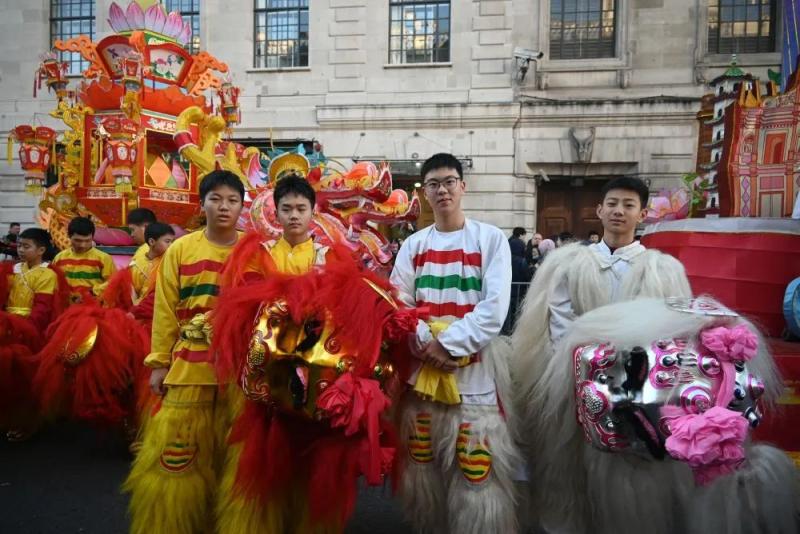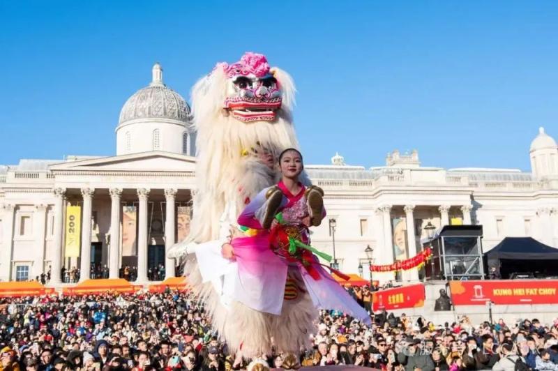 图为在伦敦举行的2025年“四海同春”新春文化典礼举止上,朱浩然等队员们饰演“引狮员高台钳腰狮身旋转1080度”当作。