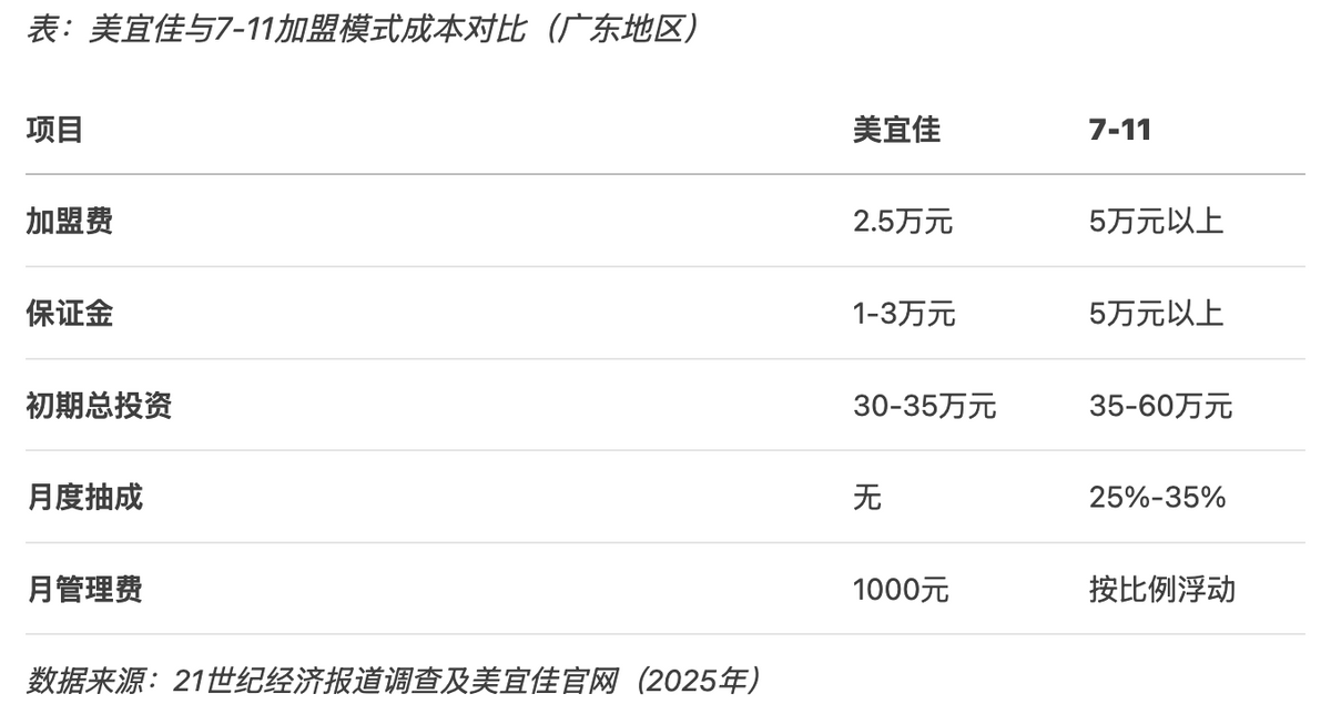 据悉,好意思宜佳的初期参加含2.5万元加盟费(品牌费1万+软件注册费1.5万)及1-3万元保证金,全体约为30-35万元。