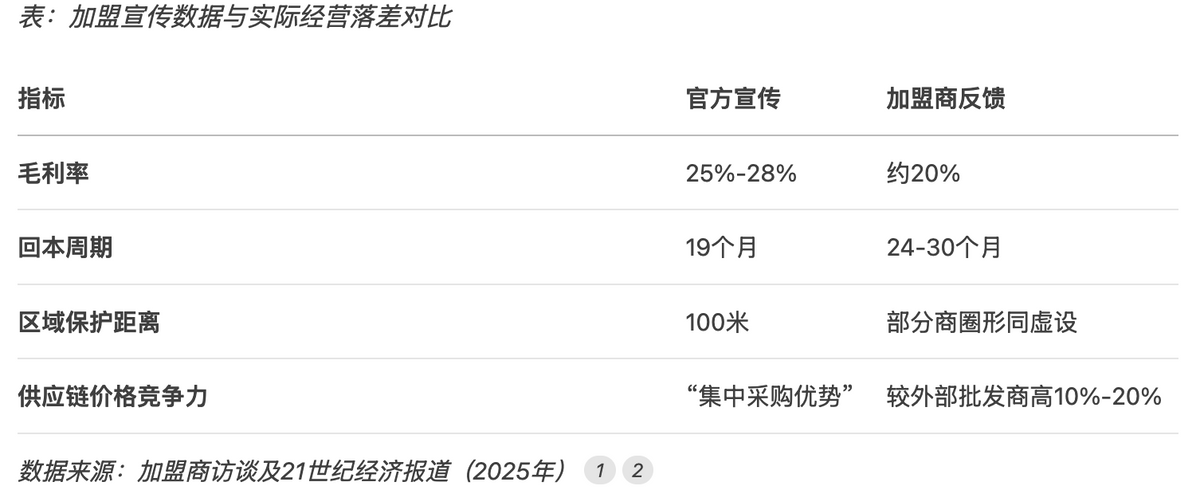 当作对比,以日系品牌、广东7-11为例,某7-11门店仅加盟费与保证金就超20万元,且需每月25%-35%的利润抽成。
