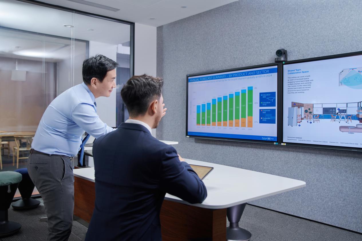 而关于有更高专科需求的管理层,FLEX 系列会议平板无疑是更佳选择。该系列包含 43 英寸 FLEX Max Pro 灵动云会议平板与 27 英寸 FLEX 桌面云会议平板两款居品,秉执轻量化贪图理念,机身工致便携,能全面适配孤独办公室、灵通办公区、居家场景及微型会议室等多元搀杂办公空间,搭配高清会议界面,为高效决策提供有劲辅助。